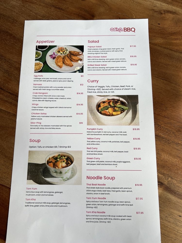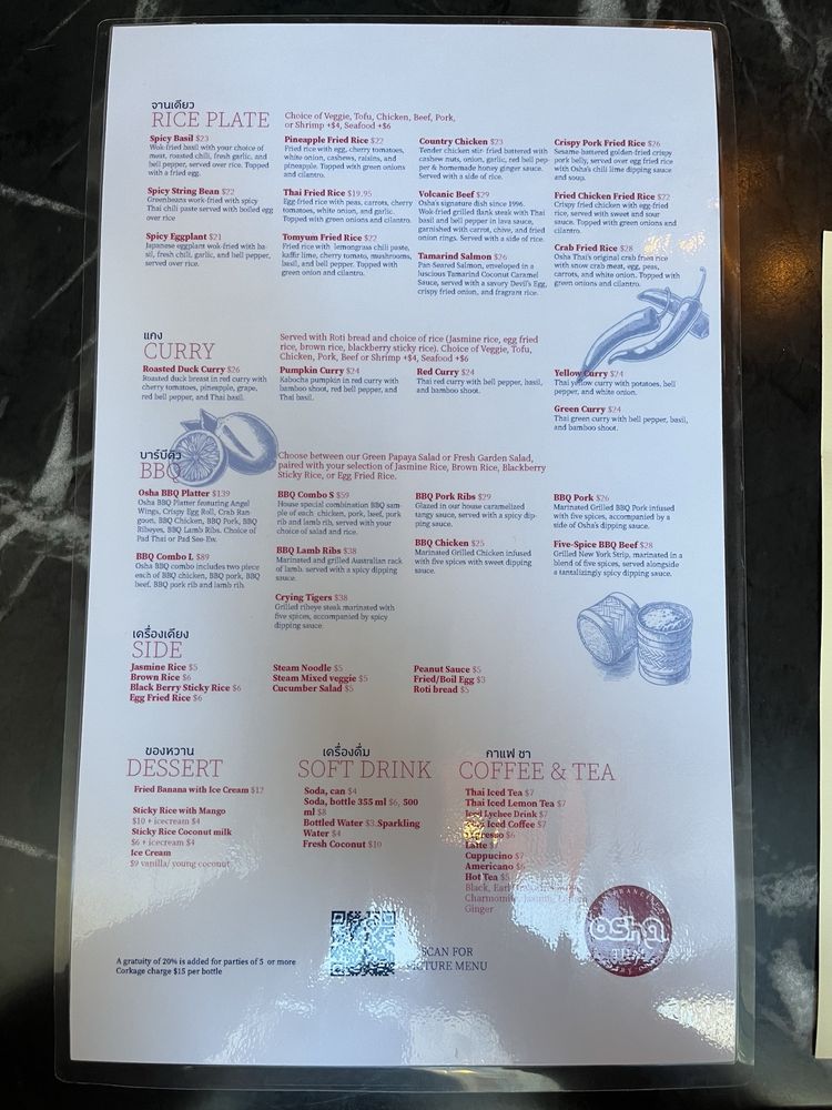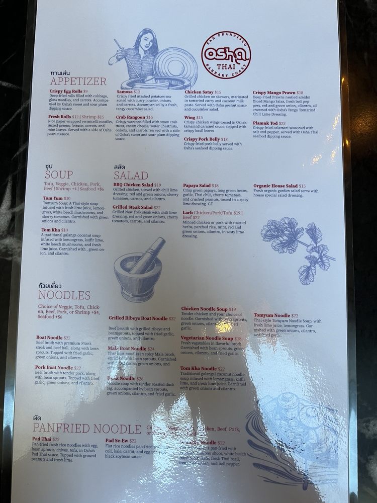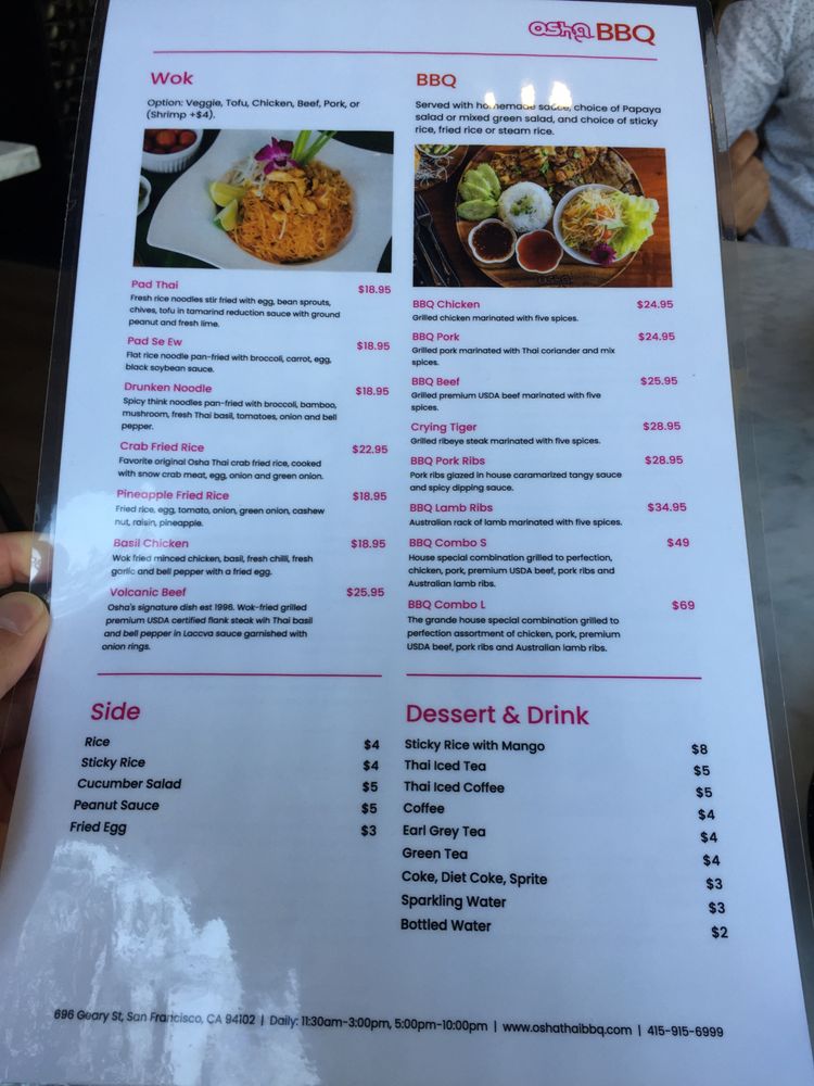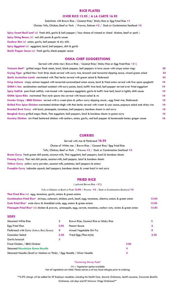 Osha Thai BBQ San Francisco Menu
